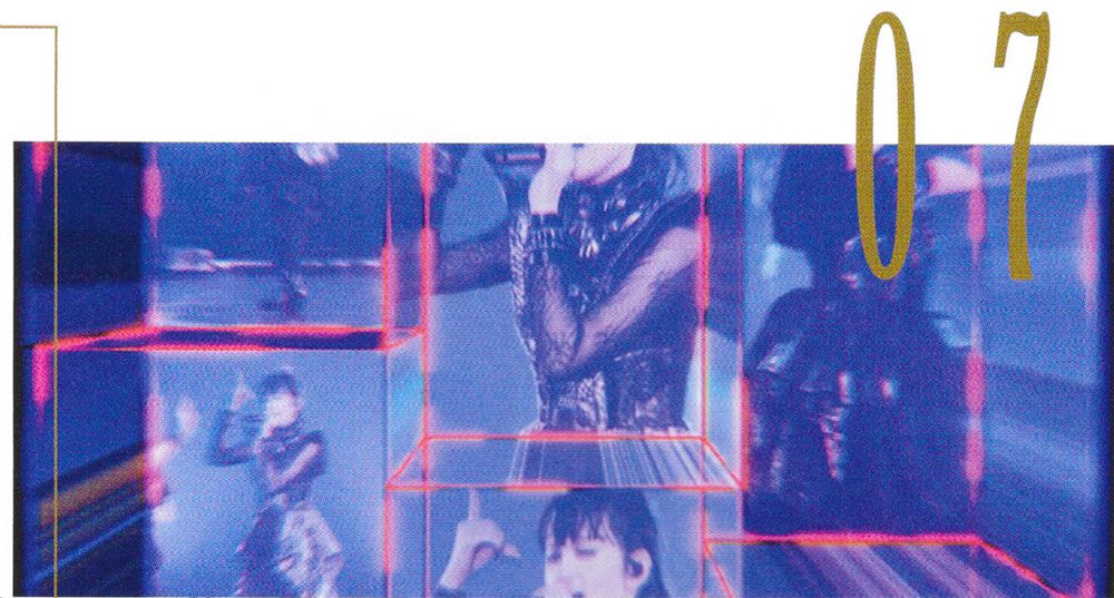 KOBAMETAL 映像を作ってくださるクリエイターさんが何チームかあって、曲ごとにクリエイターさんが違うんですよ。そういった意味で、それぞれのチームのキャラクターが出ている部分はあるかもしれないですね。このビデオにも登場するリアルタイムエフェクトでは、カメラでいったんライブ映像を取り込んで、それにリアルタイムでエフェクトをかけて、もう一度映像に戻すようなことをやっているみたいですね。