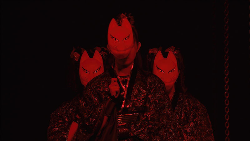 日本武道館でこの地を離れて異国の地へと旅立っていった棺桶が、さいたまスーパーアリーナに戻ってくるというオープニングで、海外武者修行からの凱旋、新春新章の幕開け、といった要素も含みながら、演出的には和洋折衷のようなコンセプトのステージを構築した。メインステージからセンターステージまで、真っすぐつなぐ通路は、天井から可動式で降りてくる朱色に近い紅に染まった大きな吊り橋が採用され、サイドステージへ移動するブリッジもどこか太鼓橋のようなシルエットを作っていた。オープニングムービーからつながる登場シーンでは、着物風な衣装をまとったメンバーがキツネのお面をつけて登場する、「メギツネ」で華やかに姿を現した。